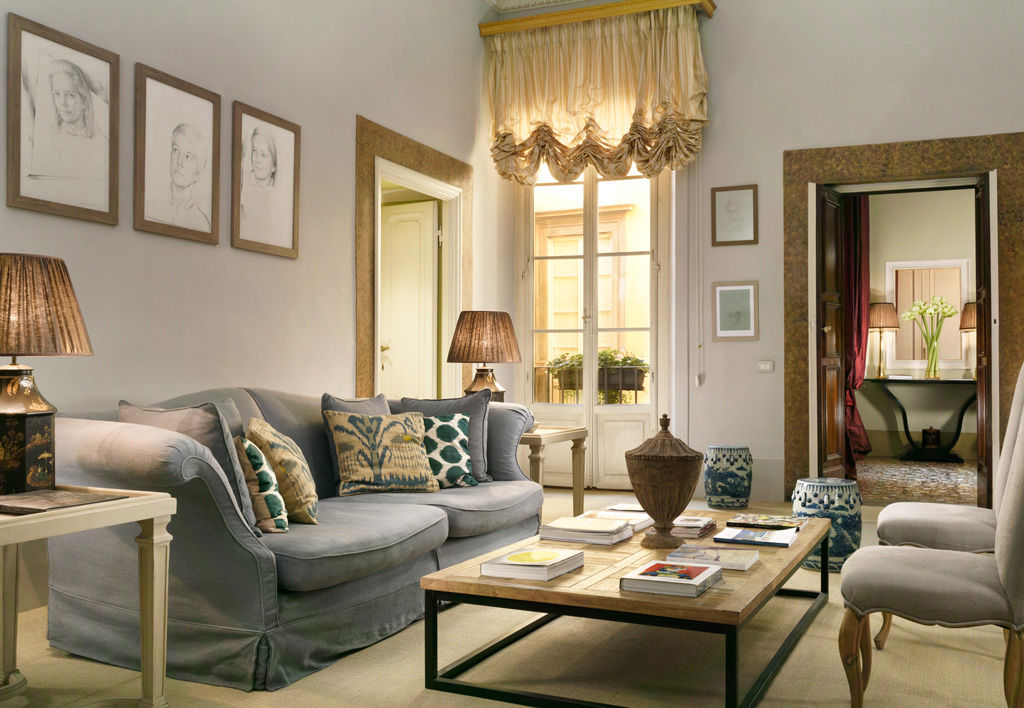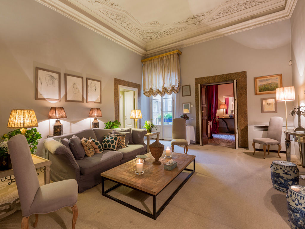 Gli spazi comuni comprendono due salotti a cui si aggiunge la sala da pranzo affrescata, dove viene servita la colazione à la carte, e la sala con buffet di succhi, selezione di tè e tisane, frutta, piccola pasticceria fatta in casa, centrifughe e aperitivi a disposizione degli ospiti in ogni momento della giornata.